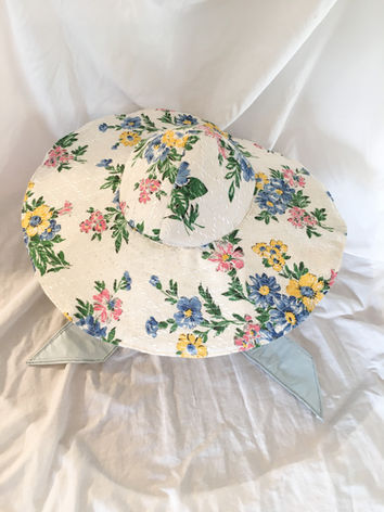 Lined sun hat with diamond shaped inserts and wired brim, perfect for shading you from the sun. The pleated silk ties will keep this in place when it is windy. The main fabric is a secondhand remnant and the lining is deadstock cotton seersucker, with a hand-stamped label to reduce waste.